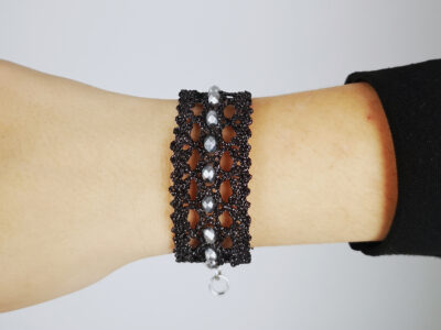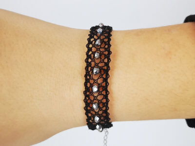 Pulsera negra y plata de encaje de bolillos