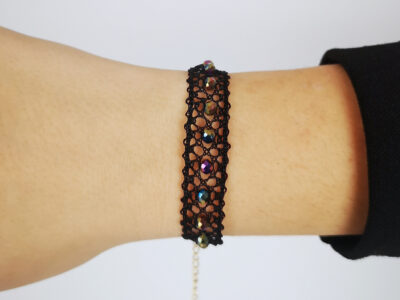 Pulsera negra piedras multicolor de encaje de bolillos