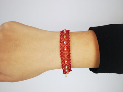Pulsera roja de encaje de bolillos