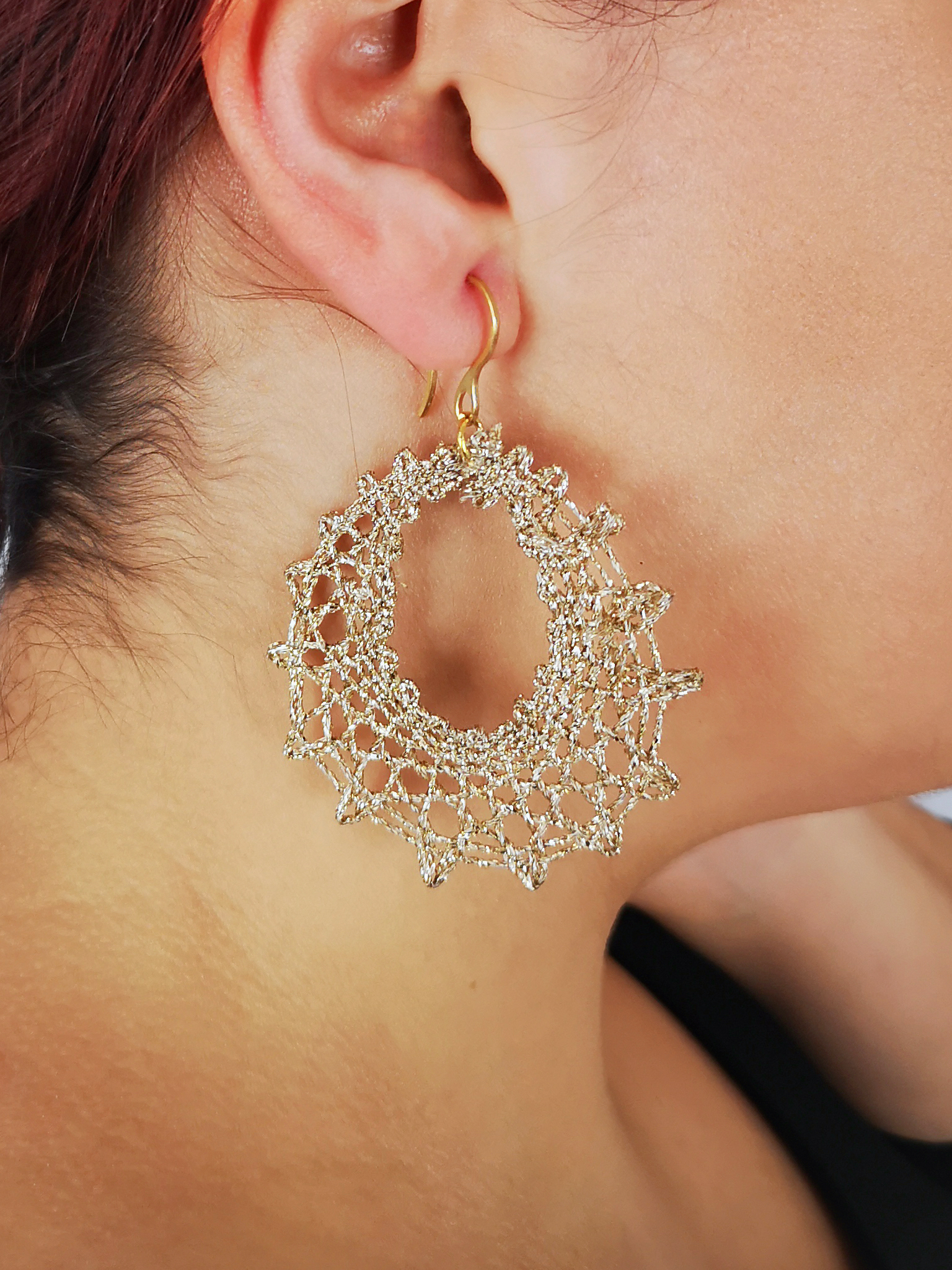 Pendientes de aro dorados de encaje de bolillos